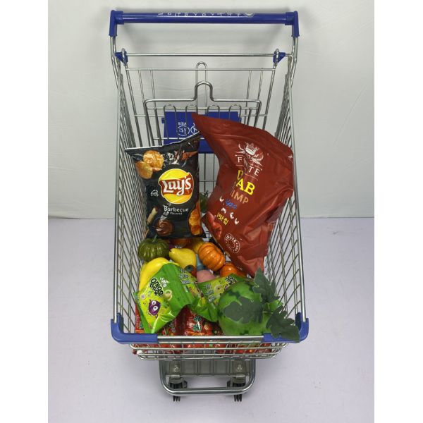 German Style 100L Regular Trolley With Blue Plastic Parts Zinc And Powder Coating For Convenient Grocery Store