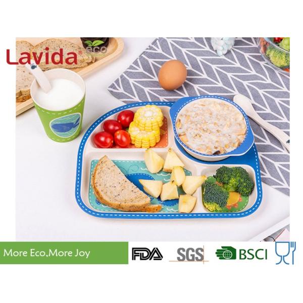 Food Grade Eco Bamboo Childrens Dinner Set 5 pcs Set with 4-sections Plate Glass Fork and Spoon Shatter-proof Reusable