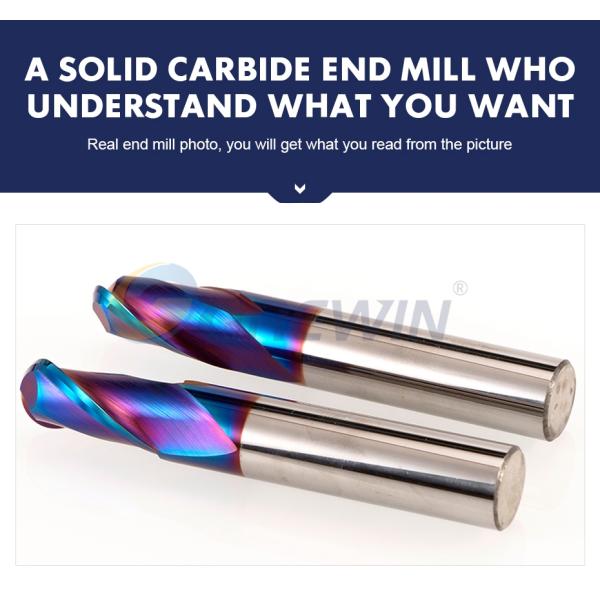 GW HRC65 2F Ball nose end mill with blue naco coated used for SS