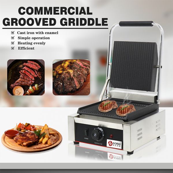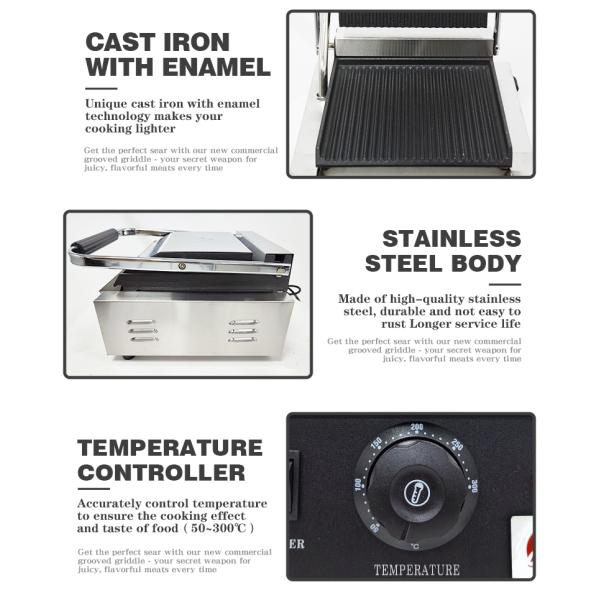 Full Grooved Stainless Steel Commercial Electric Contact Panini