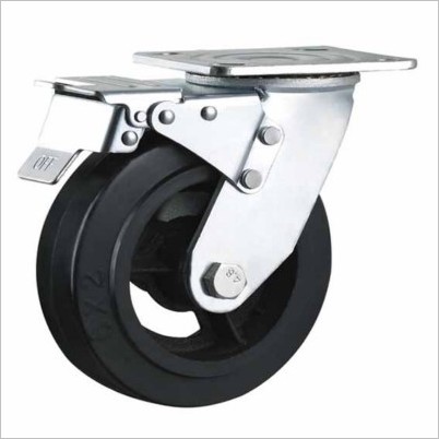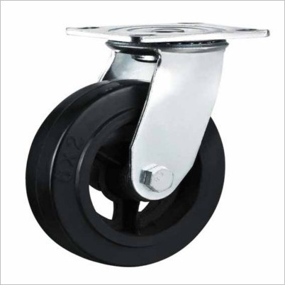 Rubber mold on cast iron wheels rolls smoothly ,perfect for all floors . 5.5mm thick housing and swivel top plate to support heavy duty load capacity .Good quality precision roller ball bearing . Corrosion resistant steel with bright zinc plated finish