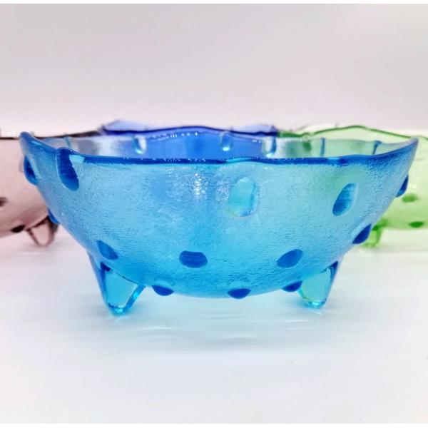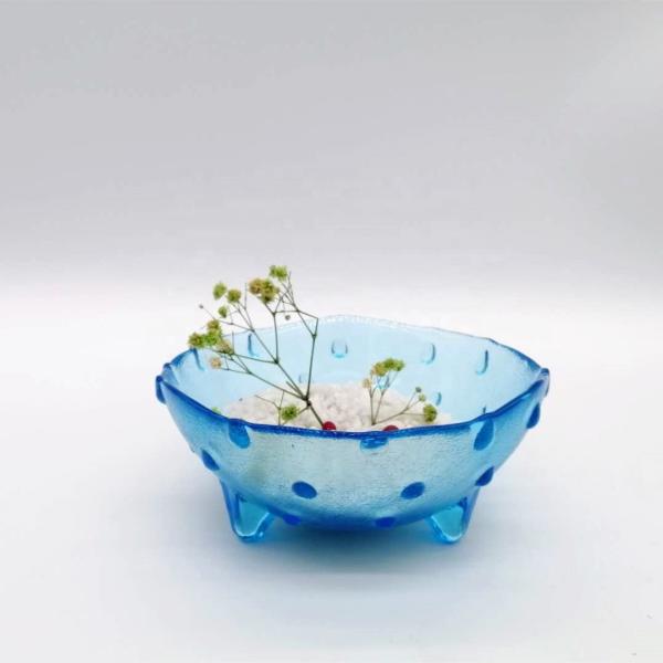 Wholesale Mixing Dessert Glass Bowl Color Glass Strawberry Bowl Unique 3 Feet Glass Charger Plates
