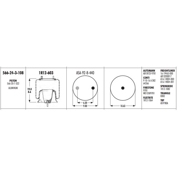 1R12-603 Goodyear Air Spring 566-24-3-108 Truck Air Springs PISTON 566-20-7-322 ALUMINUM