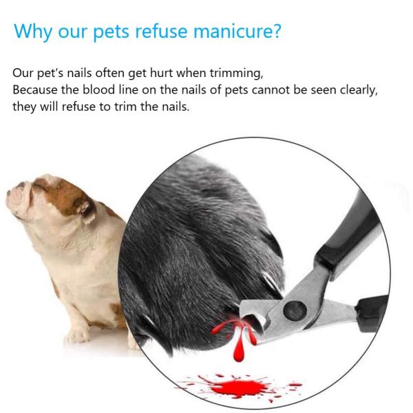 1. The LED light illuminates the blood line of the pet's nails,