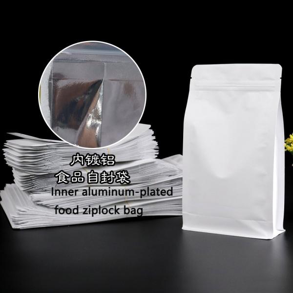 White kraft paper Flat Bottom zipper bag food grade packaging bag