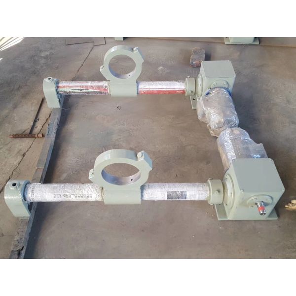 Structure: mainly composed of motor, worm gear reducer, bevel gear box, guide screw, flexible, bearing seat, transmission block, shaft, roller, sensor etc. The electric tensioner uses the motor to directly drive the worm gear to transmit the screw rods on both sides to rotate through the bevel gear on the transmission shaft. It is flexibly installed on the screw rod and is sleeved together with the bearing seat. Proximity switches (limit switches) are installed at both ends of the guide rail on the drive side to protect the safety of the tensioner.