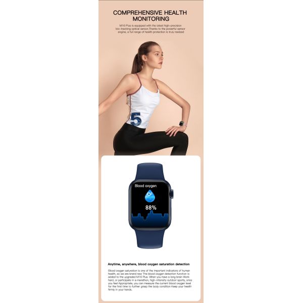M16 Plus Smartwatch Call Sport Fitness Band Bracelet Heart Rate password Split Screen Smart Watch Series 6 Women Men