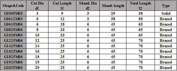 The standard tungsten carbide grade is YG8, which is of