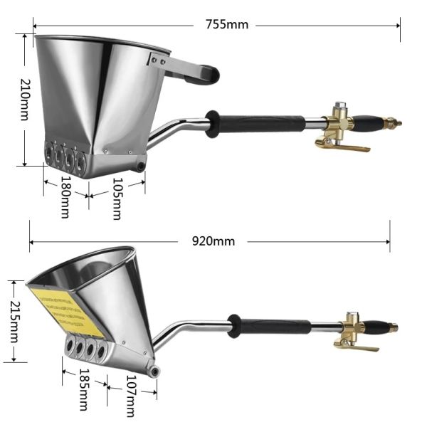 Distance between wall and mortar sprayer: maximum from 50 to 100mm