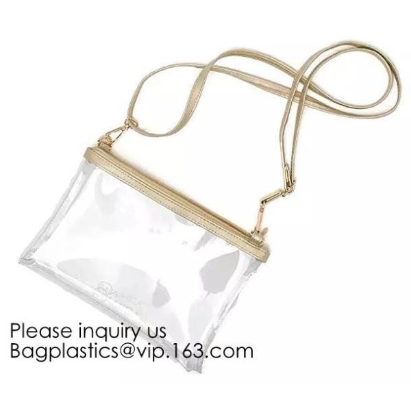 Durable Clear Tote Bag - Clear bags are made of heavy duty and harmless clear PVC waterproof material. The wrist strap and shoulder strap is made of thick nylon. This clear bag is perfect for football games, schools, travel, stadium sports and much more!