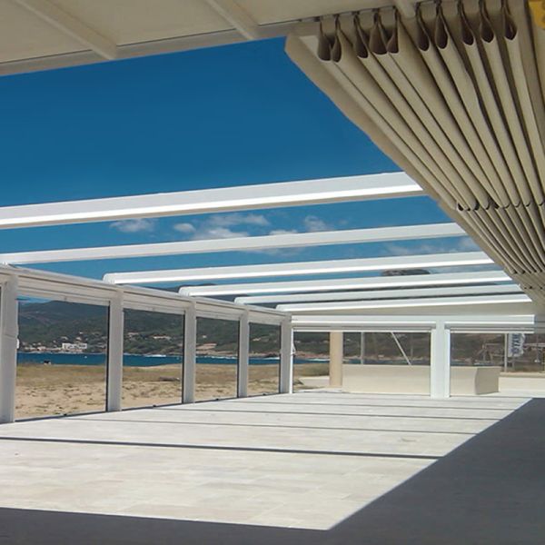 Aluminum Retractable Roof is made of powder coated aluminum structure with Waterproof PVC Fabric.