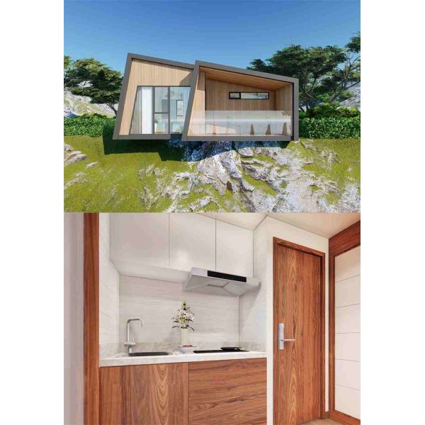 This modern prefabricated villa features a separate bedroom and bathroom, separated from wet and dry, ensuring that the bedroom is not damp and better kept clean and clean for a more comfortable stay. The bathroom is extraordinarily luxurious, with an oversized bathtub and shower accessories to make your bathing process more comfortable. The highest point of the bedroom is 3.8 M, giving you a greater range of activities and space.