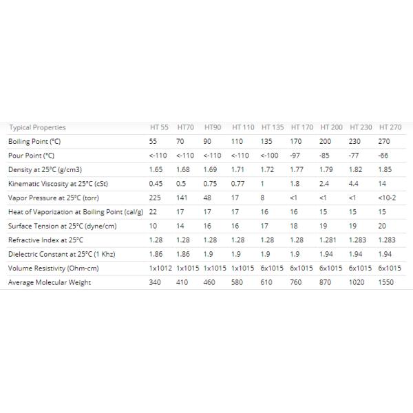 Galden HT fluids have excellent thermal and chemical stability, giving them good compatibility with materials. Thus, Galden HT fluids will not corrode or react with construction materials, nor will residues form from decomposition, corrosion, or fluid degradation.
