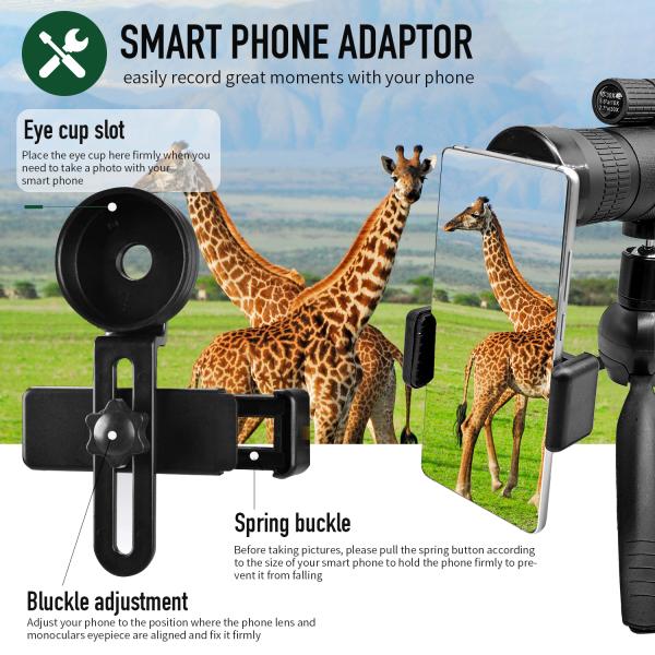 ✅ The monocular telescope comes with the newest upgraded quick alignment smartphone holder and a high quality stable tripod. easy to install, provide HD images or videos to share with your friends.