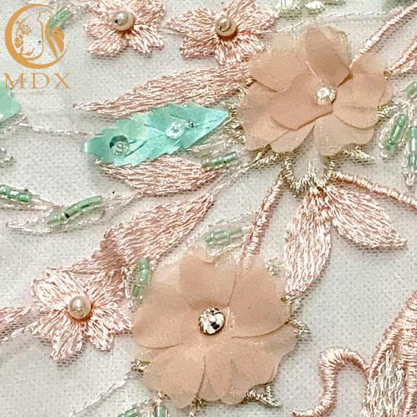The Application For Dress 3D Flowers Embroidery Lace Fabric