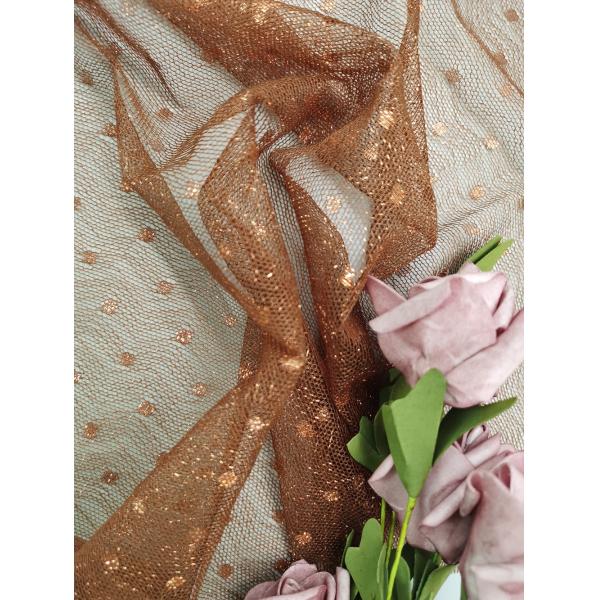 Brown Color Embroidered Lace fabric Metallic Tulle Lace Light Weight Dot Lace