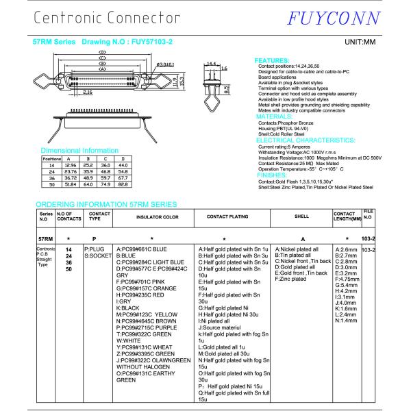 14Pin 24Pin 36Pin 50Pin Male Centronic Connector, Solder Clamp Male Type 57 CN Connector for 1.6mm PCB Board