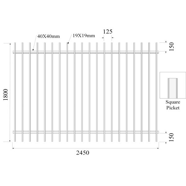 4. There are 17 vertical pickets 20x20mm with diamond crimped on top.