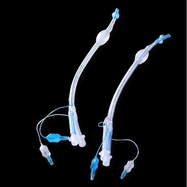 Endobronchial tube is used for one-lung ventilation Made of PVC in medical grade. Available with Left-sided and Right-sided types.The cuffs, two lumens and pilot balloons are imprinted with Tracheal (clear) or Bronchial (blue) for easy identification. Smooth inner lumens allow easy passage of bronchoscopes. Pre-loaded with stylet to help tube maintain shape for easier intubation. Packed with switch connector and two Low Friction suction catheters.