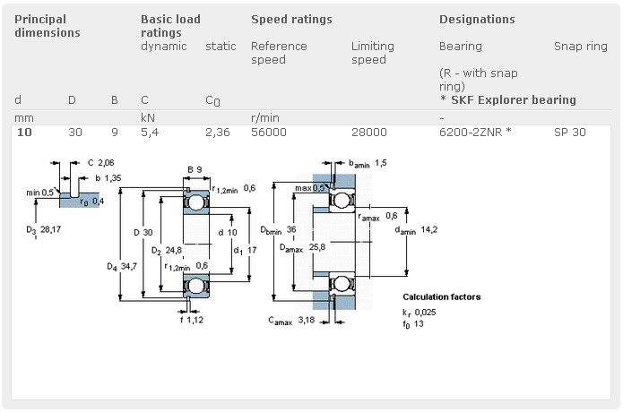 | 6201 | 12 | 32 | 10 | 0.6 | 6.10 | 2.750 | 18000 | 24000 | 0.0360 |