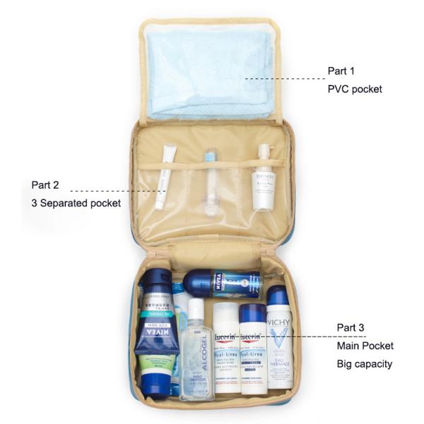 Wholesale Fashion Custom Waterproof Square Makeup Organizer Toiletry Bag With Mesh Pockets