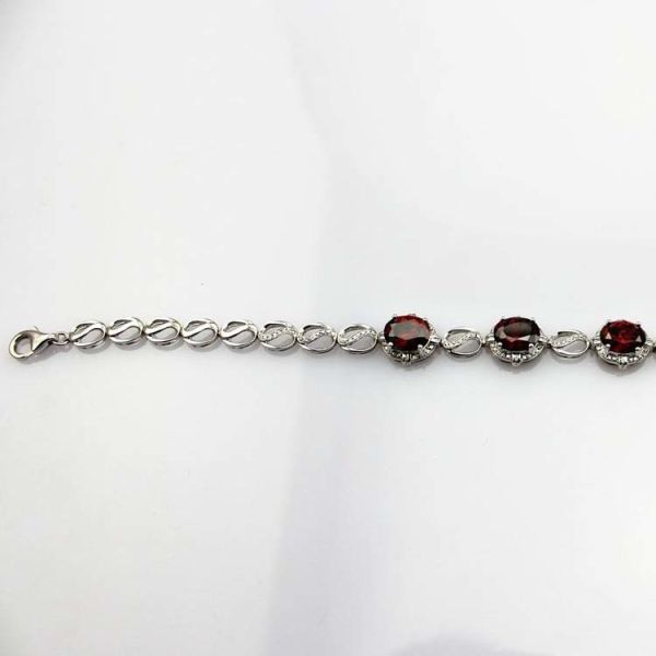 Quality 925 Sterling Silver Created Garnet CZ Diamonds Link  Tennis Bracelet (H10) for sale
