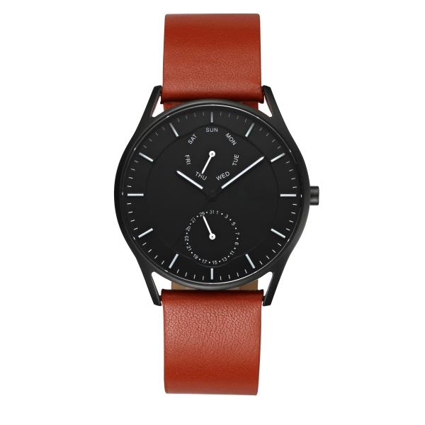 Customized double dial chronograph private label watch with brown leather strap