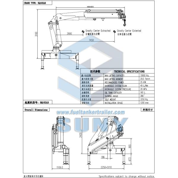 Following is drawing of the SYSQ10ZA3 folding arm truck crane ( Which include detailed specification on it )