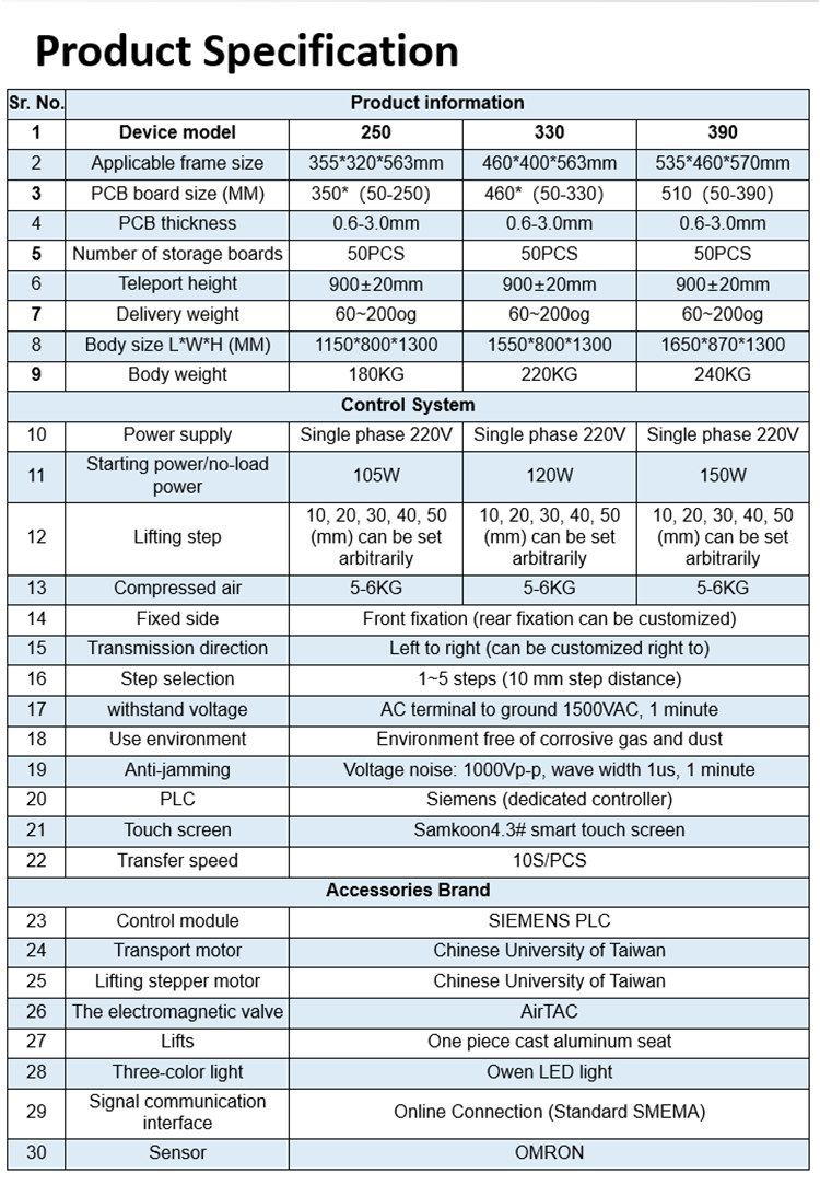 Number of storage boards | 50PCS | PCB board size (MM) | 350* (50-250) |