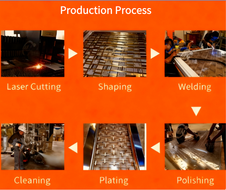The second method is to use a stainless steel plate for laser hollow cutting and then weld it to the stainless steel frame.