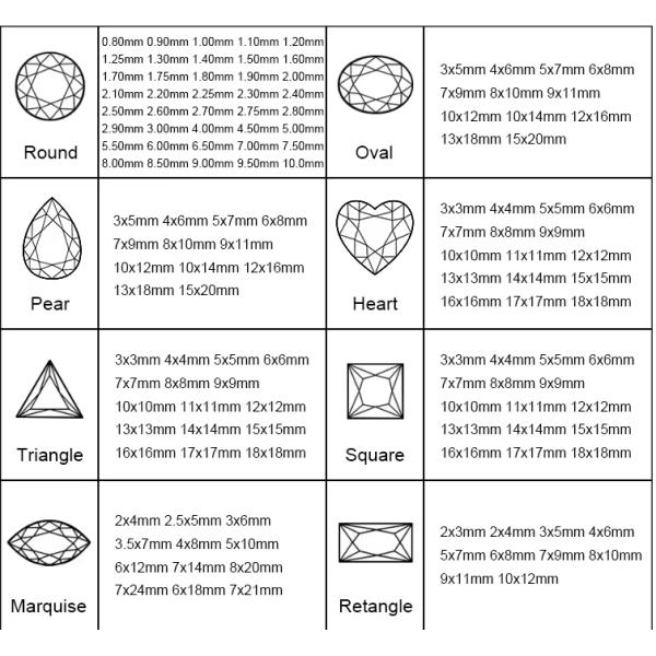 Shape | Round, Oval, Pear, Cushion, Heart, Emerald, Marquise, etc. |
