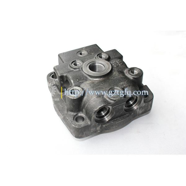 Mounting Flange - The interface that allows the travel motor head to be securely mounted to the excavator's undercarriage structure.
