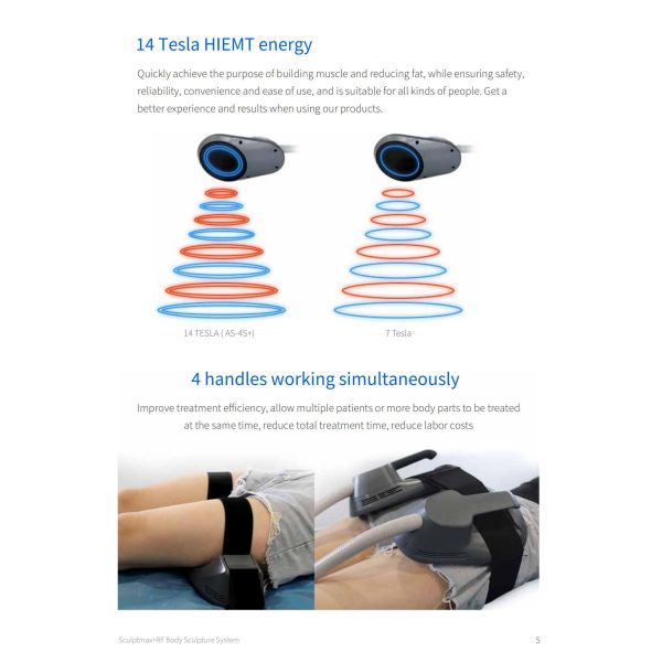 Equipped with RF temperature settings of 110/230V~ and 50/60Hz, as well as HlEMT intensity of 14 Tesla, this Sculpting System Machine offers precise control and effective results. The fuse rating of 20A ensures safety during operation, giving users peace of mind.