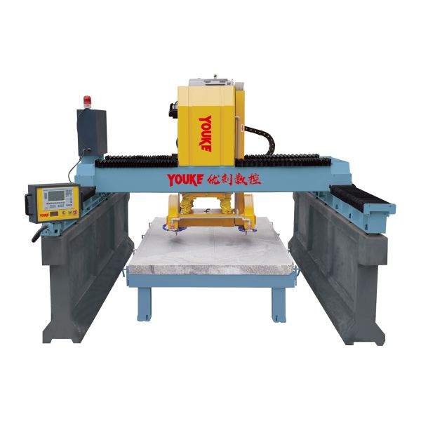This machine adopts double beam structure of gantry type. Full servo control, using high-precision linear track and oil-immersed and dust-proof structure to ensure equipment accuracy and service life, the machine can realize CNC programming and CAD import, three-dimensional using NC path to meet all kinds of high-precision stone (cement products) shaped workpiece processing. Adjusting the parameters can realize the operation of one person and multiple machines.